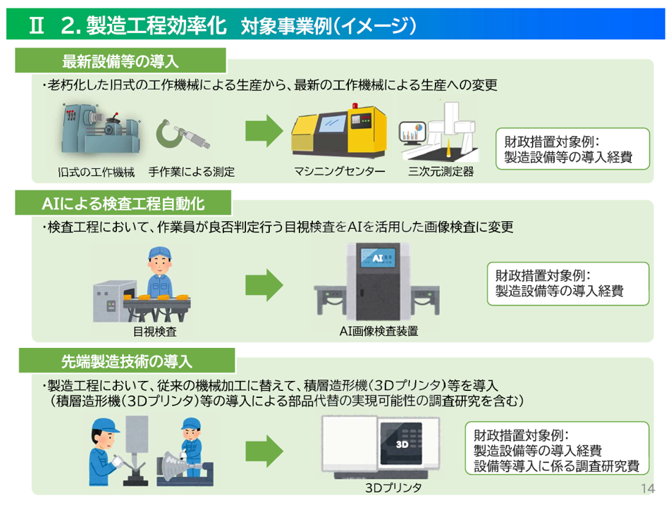 このような背景を踏まえ、「製造工程効率化」では、特定取組として次のような改善が進められています。